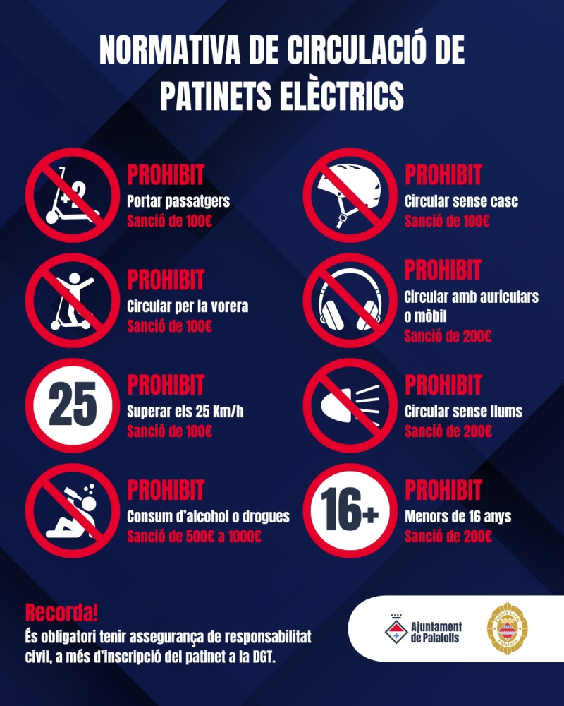 La Policia Local de Palafolls vol recordar la normativa que regula l’ús dels Vehicles de Mobilitat Personal (VMP), com ara els patinets elèctrics. Aquesta normativa respon a la necessitat d’adaptar-se a l’augment d’ús d’aquests vehicles i als nous riscos que se’n deriven, amb l’objectiu d’afavorir una convivència segura a l’espai públic i consolidar un model de mobilitat sostenible.